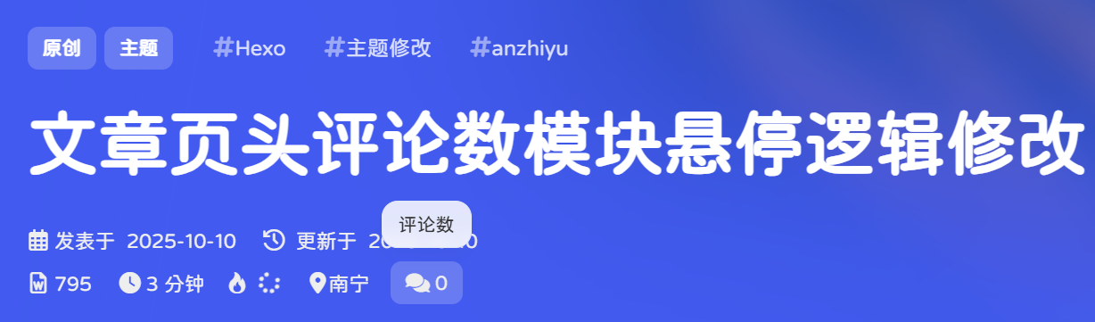 最近在完善hover的样式,文章页头的评论数统计只有评论数字可以跳转到评论区,与hover强调的整体性不是很匹配,故有此文